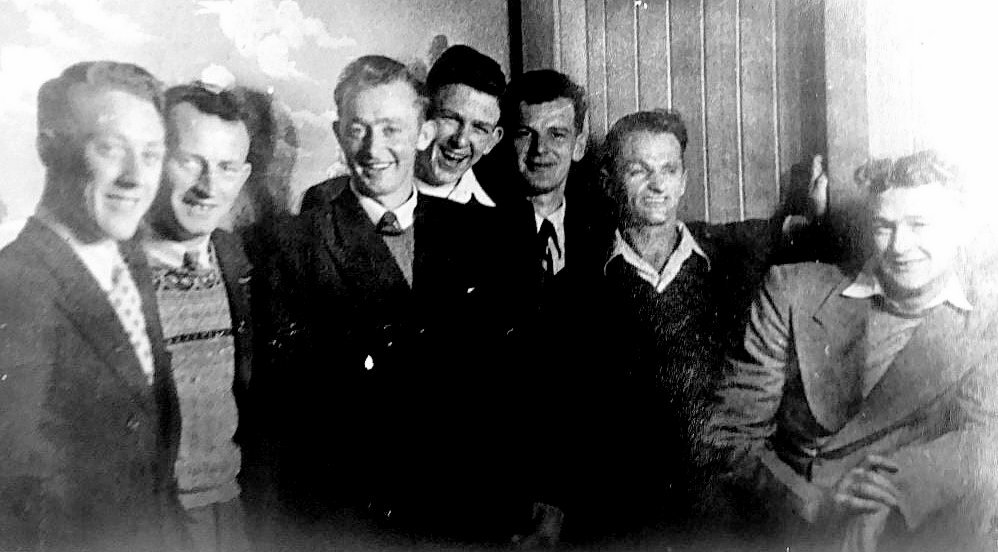 Greymouth cyclists - Eric Maguigan, Keith Morgan, Ron Hartill, Brent Woodgate, Dave Clark.at Greymouth. 1950`s.