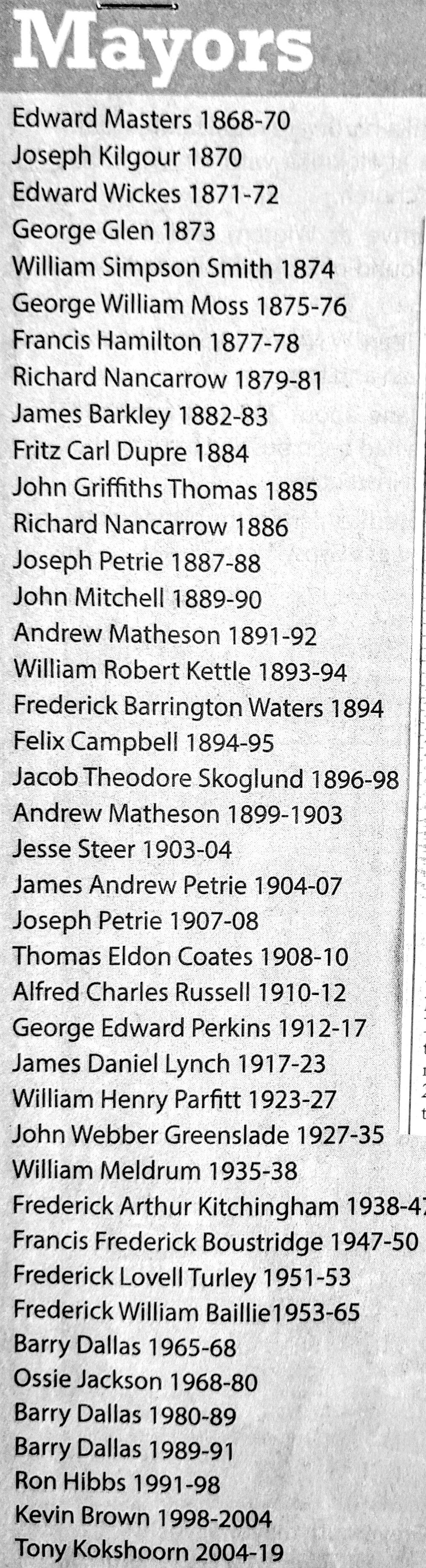 West Coast New Zealand History (17th Oct 2022). List of Greymouth mayors. In Website West Coast New Zealand History. Retrieved 4th Apr 2026 15:39, from https://westcoast.recollect.co.nz/nodes/view/28722