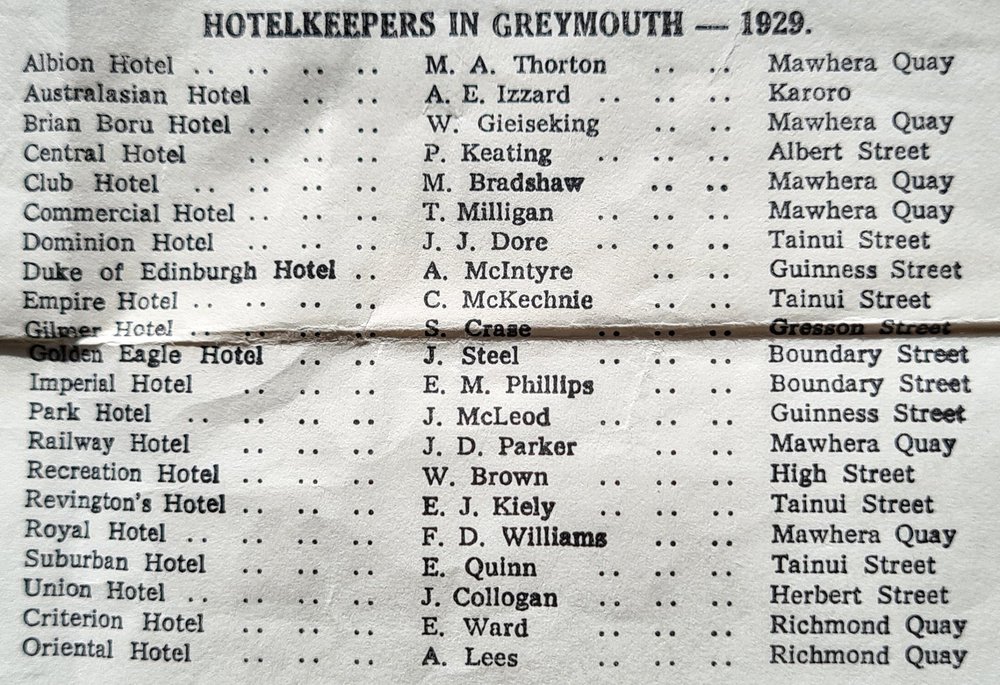 West Coast New Zealand History (28th Nov 2020). Hotel Keepers in Greymouth.1929. - ALBUM -. In Website West Coast New Zealand History. Retrieved 12th Apr 2026 15:34, from https://westcoast.recollect.co.nz/nodes/view/28733