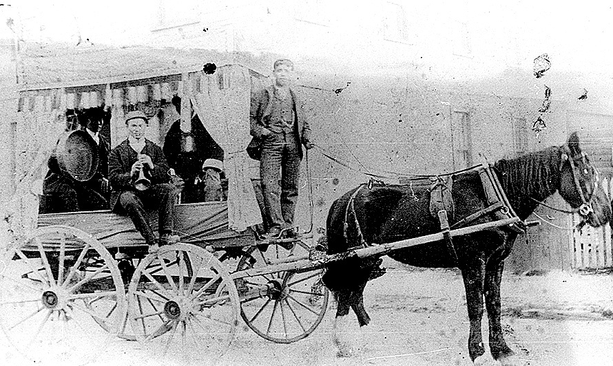A Chinese musical ensemble taking part in a procession.Greymouth.ca.1900.