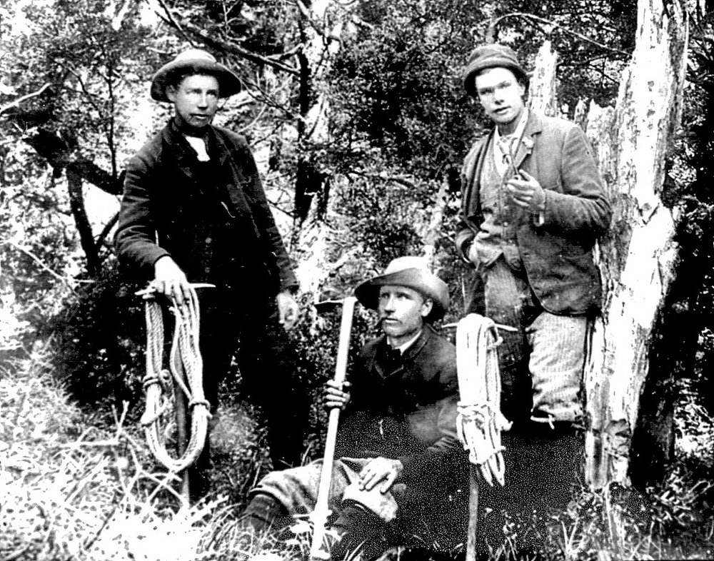 1st ascent of Mt Cook - J Clarke, G Graham, T Fyfe at Governors Bush. Christmas Day, 1894.