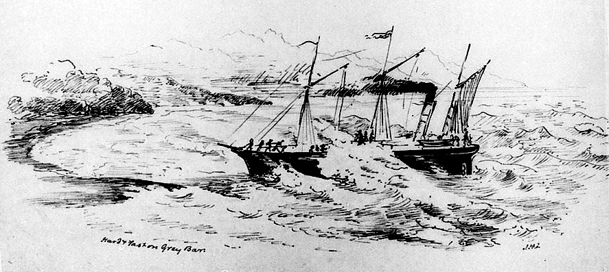 The Wonga Wonga wrecked entering the Grey River Harbour.1866.