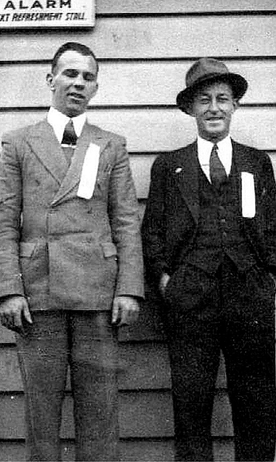 Tom Merriman and Noel Messenger setting up the National Schoolboy Rugby League Competition.1945.