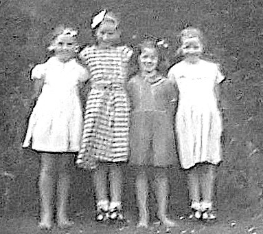Pamela Williams, Teresa Green, Jessie Hartill and ? in Taylorville.ca.1955.