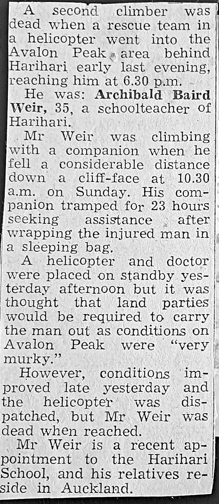 West Coast New Zealand History (1st Feb 2021). Climbing Tragedy - Archibald Weir,aged 35 - Schoolteacher at Harihari. - 2 PHOTOS -. In Website West Coast New Zealand History. Retrieved 12th Apr 2026 00:53, from https://westcoast.recollect.co.nz/nodes/view/28941