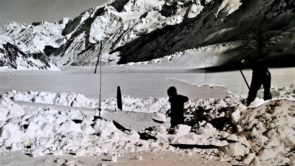 A ski plane suffered engine failure on the Tasman glacier,July 1975.
