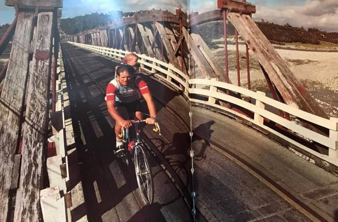 My nephew and brother in law cycling from Hokitika to Kumara and return.
