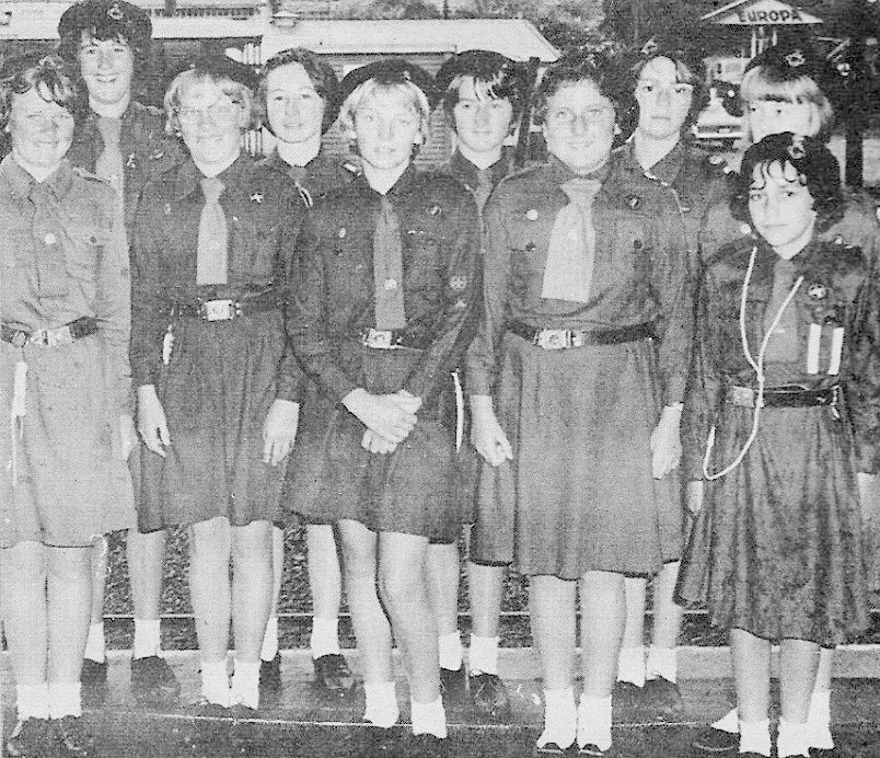 Cobden Girl Guides - ready to leave on a trip to Christchurch.ca.1965.