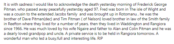 West Coast New Zealand History (5th Mar 2021). Frederick George Pitman - obituary. In Website West Coast New Zealand History. Retrieved 11th Apr 2026 15:08, from https://westcoast.recollect.co.nz/nodes/view/29062