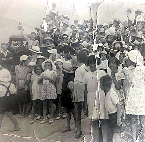 Arthur Langton top left taking a truck load of kids to a picnic at the scout hut in Westport ca 1952.