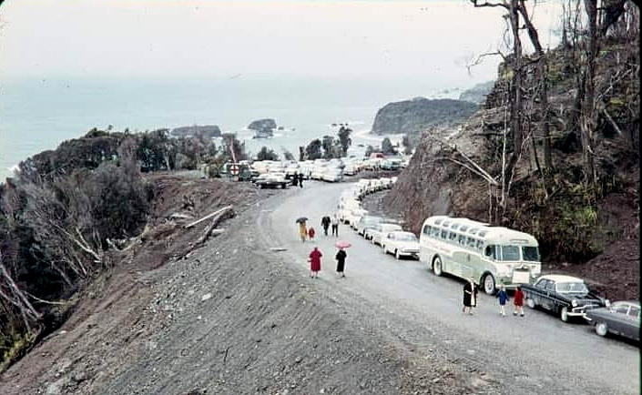 That was a exciting day for Us South Westlanders to see that ribbon cut and all the vehicles all driving past,but oh my god ,did it rain later in the day ,and we couldn’t drive back home from Haast ,as the road was closed by slips ,we had to sleep in our vehicles,as there was no accommodation ,Or food to be bought ,A great day ended in a nightmare ,But today it’s a fantastic road ,it has made life in South Westland a breeze over the years ,