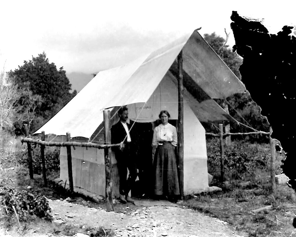 Cyril Northcroft and his wife Florence nee Filmer on their honeymoon, Whataroa 1912.