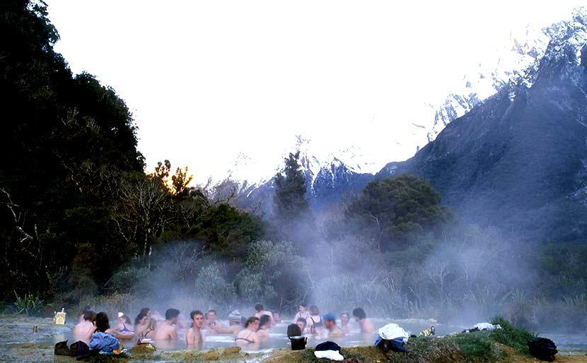 Welcome Flat hot pools,17 kilometres up the Copland River, Westland.1994.
