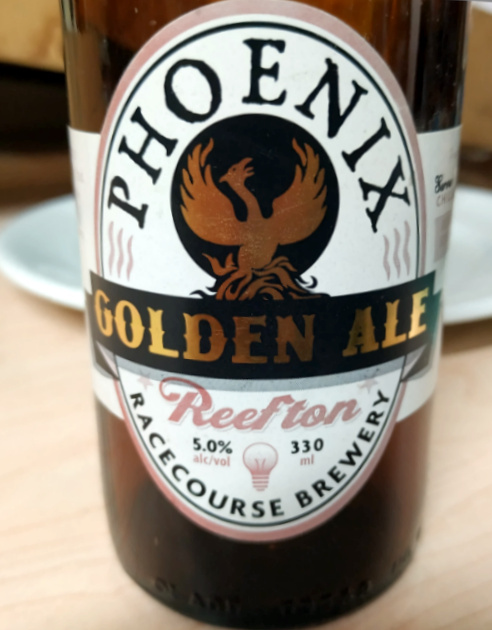 A bottle of racecourse golden ale from Phoenix Brewery, Reefton.