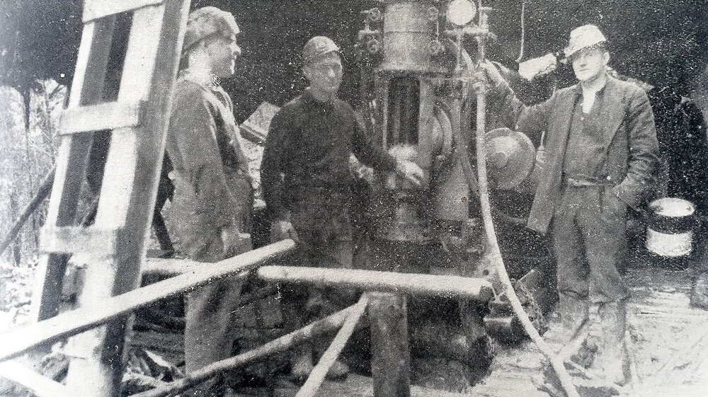 Mines department petrol-driven rotary drill operating near Blackball