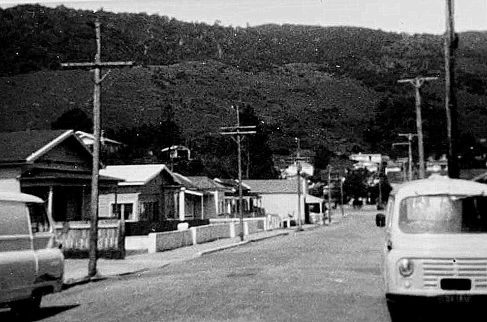 We lived at 108 Alexander Street around the corner and I would buy lollies at Pollock's shop shown in the photo.Most of Chunn's hill was grassed in the 50s but here is reverting to blackberry,gorse and broom.