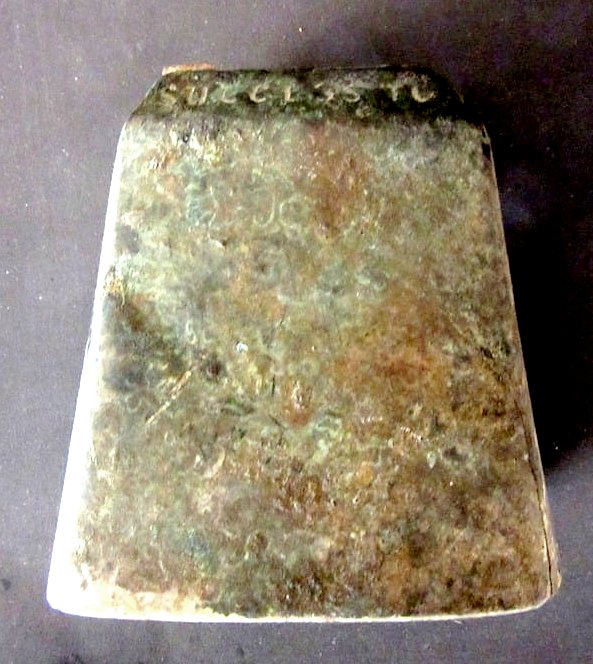 An old bell dug up from under the old Red Lion Hotel in Hokitika.1860-70`s vintage.