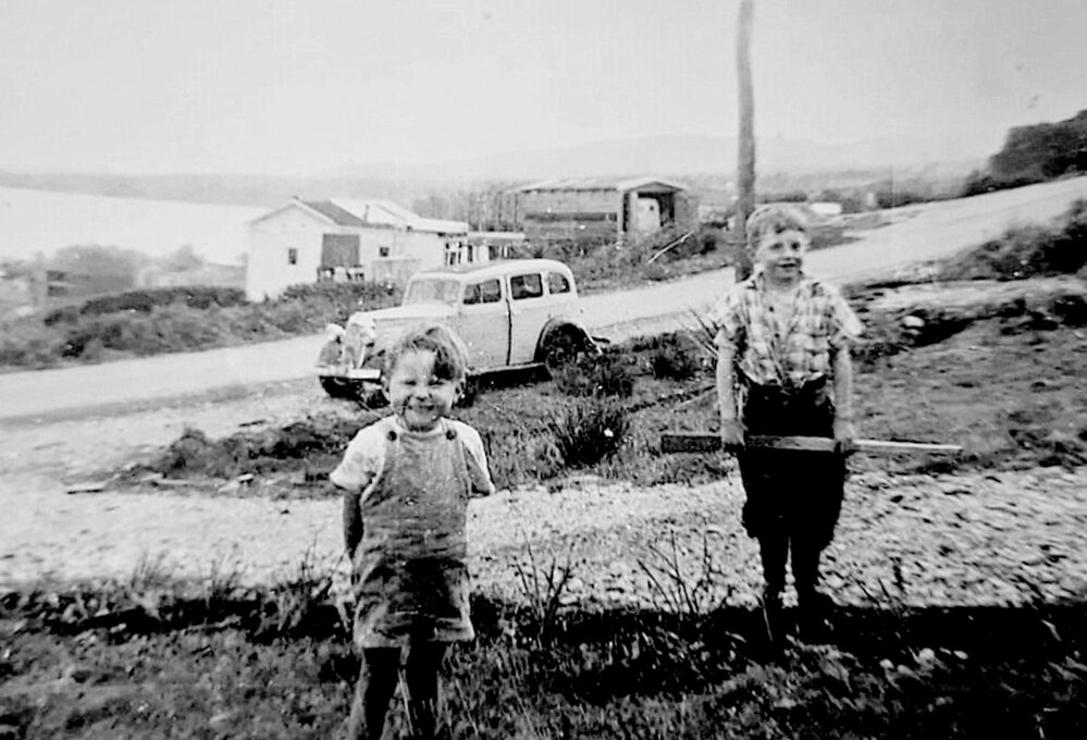 Michael Dense and brother Richard (Dick) on Coleman lawn Moana. 1964.