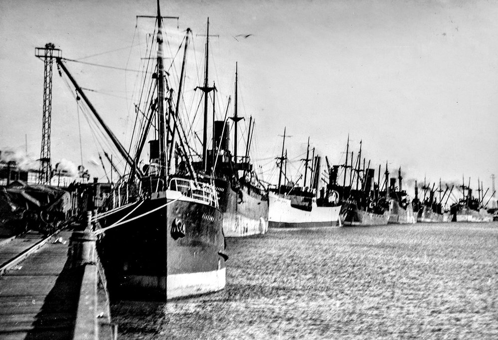 AddBy: William Gray20th Aug 2021 1:09PMNames for the first five are ALEXANDER, (Anchor Co), MERNOO. (Melbourne Steamship Co Aust).ABEL TASMAN. (H .C. Sleigh Aust) KARTIGI, POOLTA. Union Co, the remaining two ?. I suspect this photgraph is more likely to be 1933 or later as Sleigh,s didn,t purchase the ABEL TASMAN until 1933, and as is well known she was wrecked here in July 1936, after breaking away from the wharf during a flood.