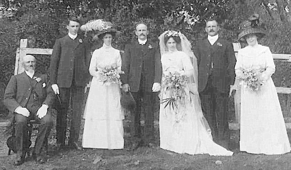 Erickson-Paul wedding, taken outside Paul homestead in Grey Street , Ahaura.1922 .