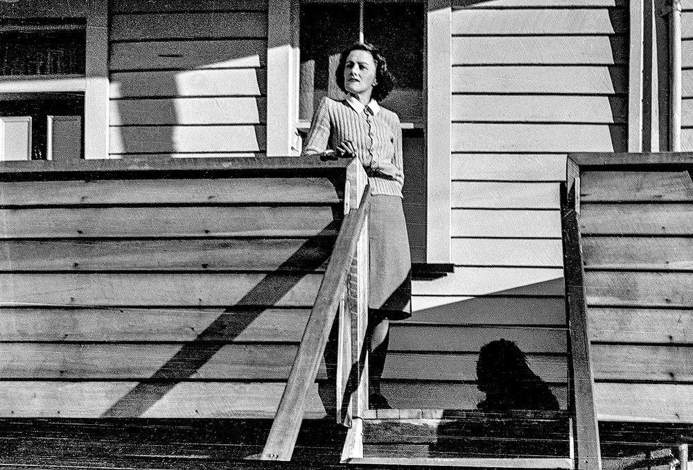My mum Marjorie Stephen on the verandah of her home in Waiuta. Mid 1940s.