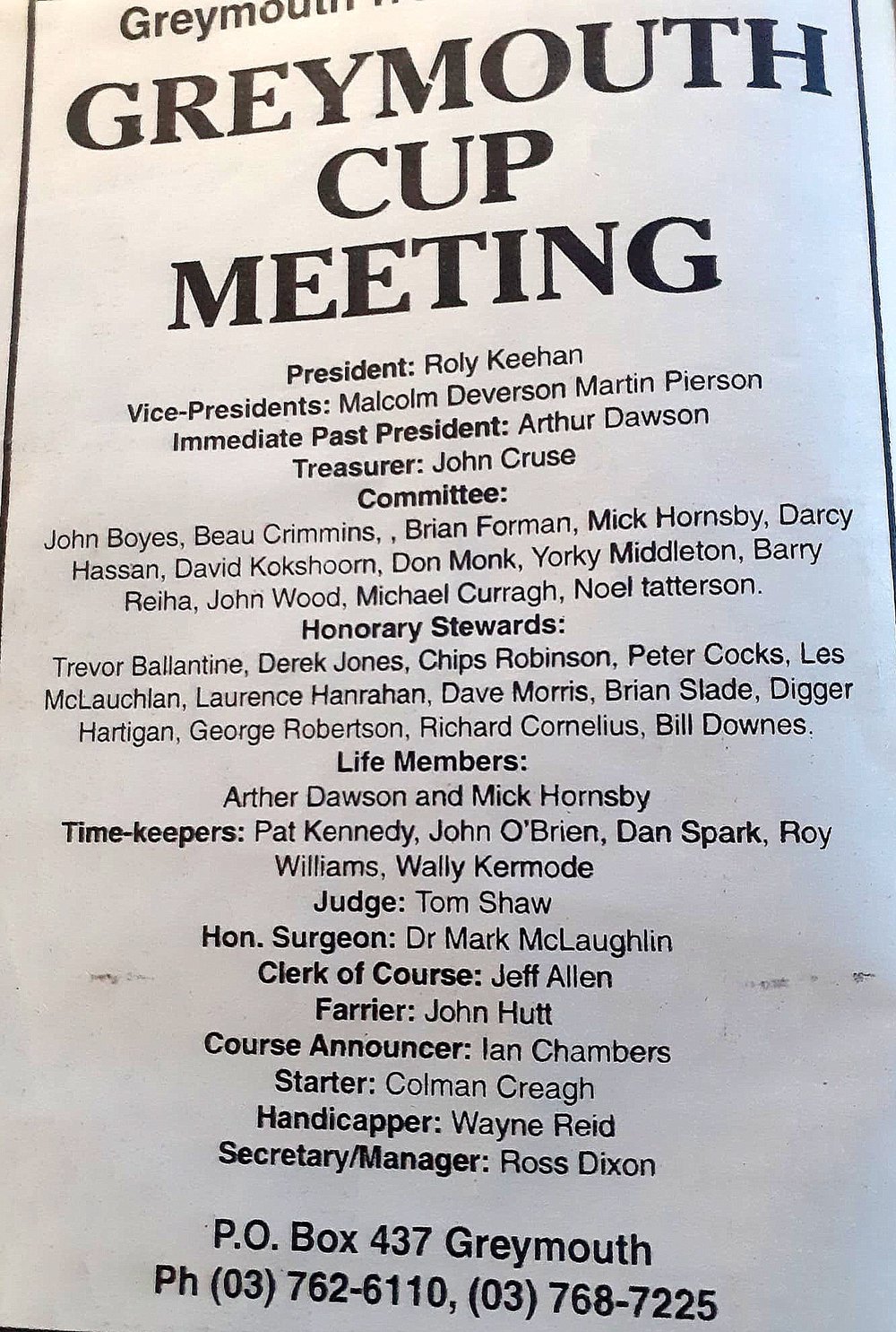 West Coast New Zealand History (25th Aug 2021). Greymouth Cup Meeting.12th March,1997. - 2 PHOTOS -. In Website West Coast New Zealand History. Retrieved 9th Apr 2026 05:11, from https://westcoast.recollect.co.nz/nodes/view/29871