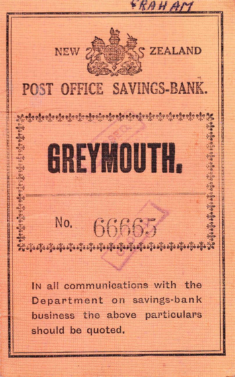 West Coast New Zealand History (31st Aug 2021). Post Office Savings Bank Deposit Book 1st. entry showing stamps.1941. - ALBUM -. In Website West Coast New Zealand History. Retrieved 6th Apr 2026 21:34, from https://westcoast.recollect.co.nz/nodes/view/29896