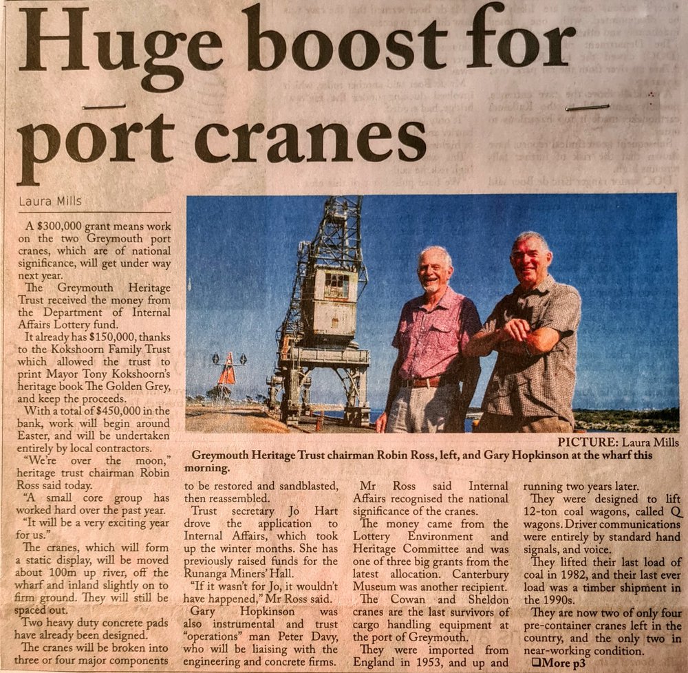 West Coast New Zealand History (27th Aug 2021). Greymouth port cranes restoration. In Website West Coast New Zealand History. Retrieved 9th Apr 2026 03:21, from https://westcoast.recollect.co.nz/nodes/view/29906