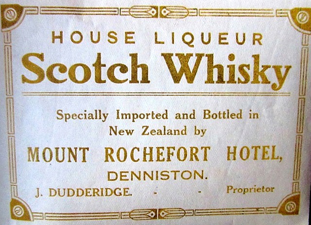 West Coast New Zealand History (5th Sep 2021). Label of whisky bottled by Mt Rochfort Hotel, Denniston.. In Website West Coast New Zealand History. Retrieved 8th Apr 2026 18:46, from https://westcoast.recollect.co.nz/nodes/view/30013