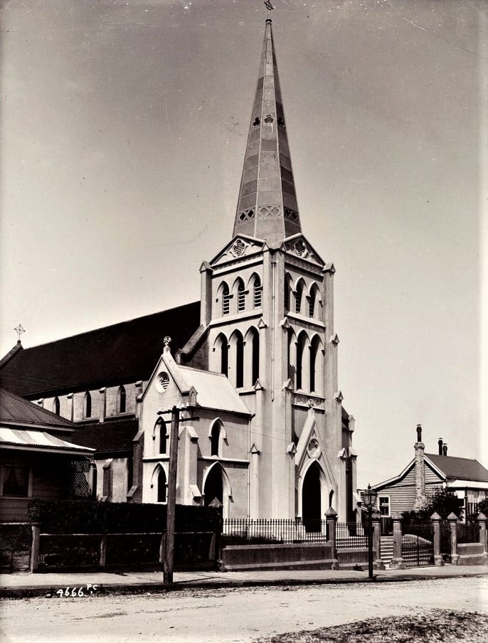 St Patrick's Catholic Church Greymouth. Opened 1888. Spire and Bell Tower added 1906.