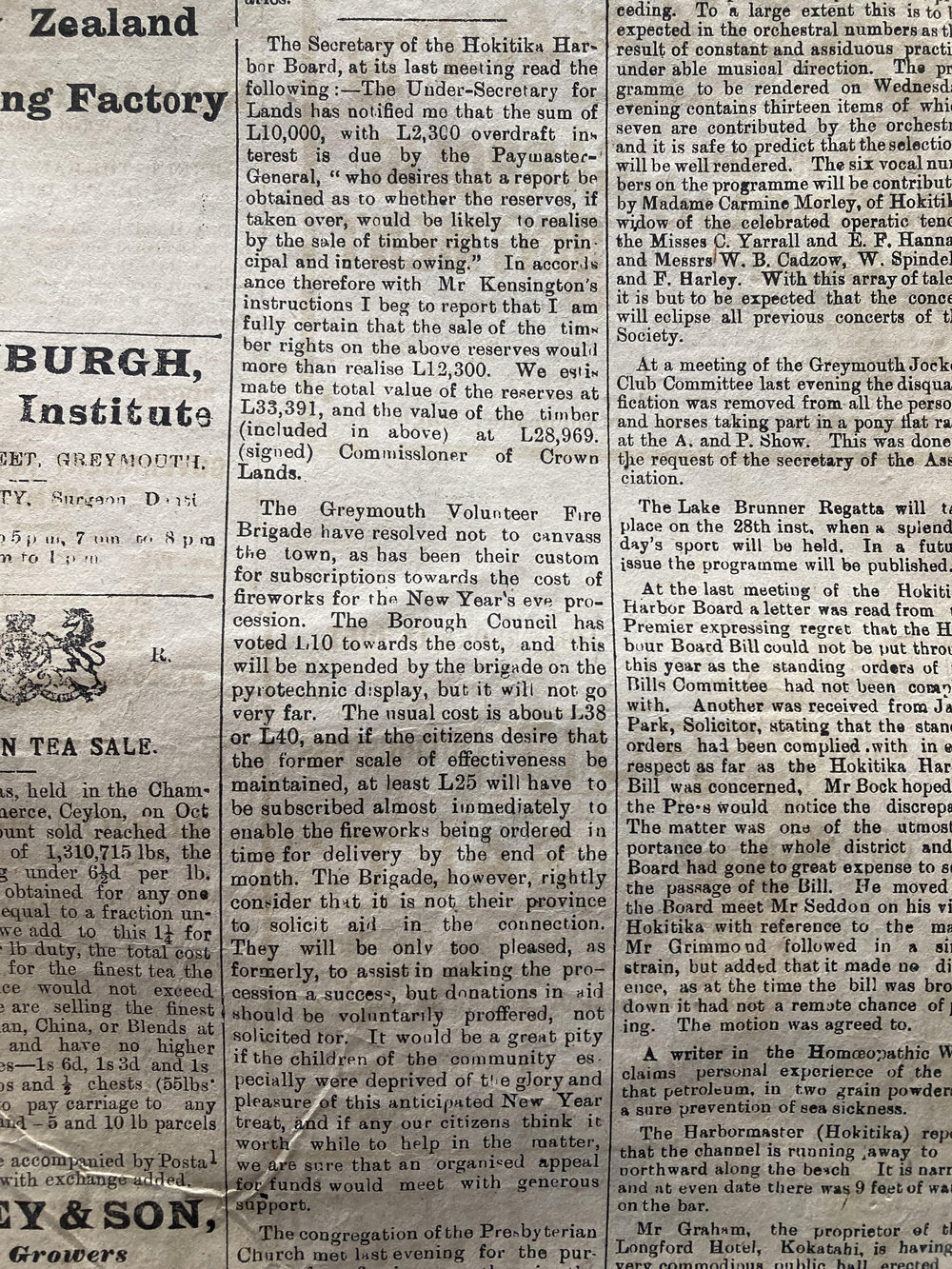 Grey River Argus 1903 - Maruia hotpools, Lake Brunner regatta, Ahaura land sale, and Greymouth Fire brigade fire works *PHOTO ALBUM*