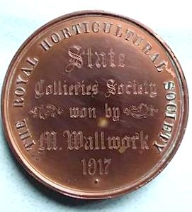 Medal - State Collieries Society won by M. Wallwork. 1917.