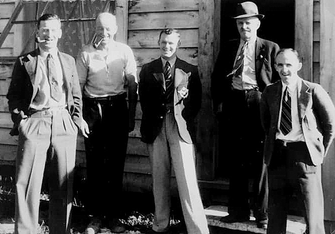 West Coast New Zealand History (13th Oct 2021). Harry Bateman ( 2nd left) - lived in a hut at Waimangaroa. ca.1940`s.. In Website West Coast New Zealand History. Retrieved 8th Apr 2026 05:11, from https://westcoast.recollect.co.nz/nodes/view/30187