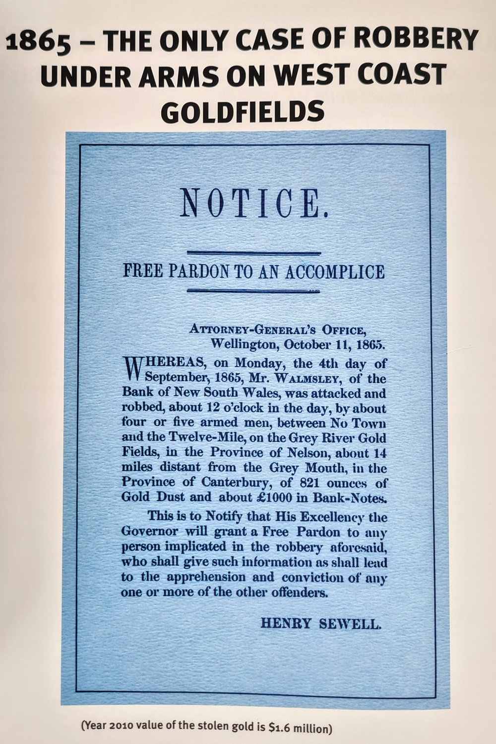 West Coast New Zealand History (26th Oct 2021). The only case of robbery under arms on West Coast Goldfields, 4th September 1865.. In Website West Coast New Zealand History. Retrieved 8th Apr 2026 00:00, from https://westcoast.recollect.co.nz/nodes/view/30267