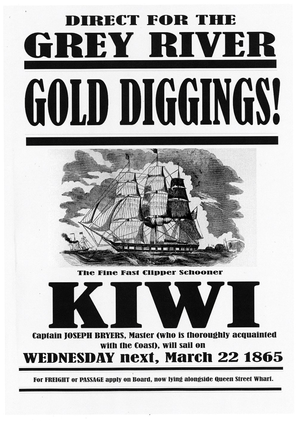 Direct for the Grey River Gold diggings - Kiwi - Capt . Joseph Briars.1865.