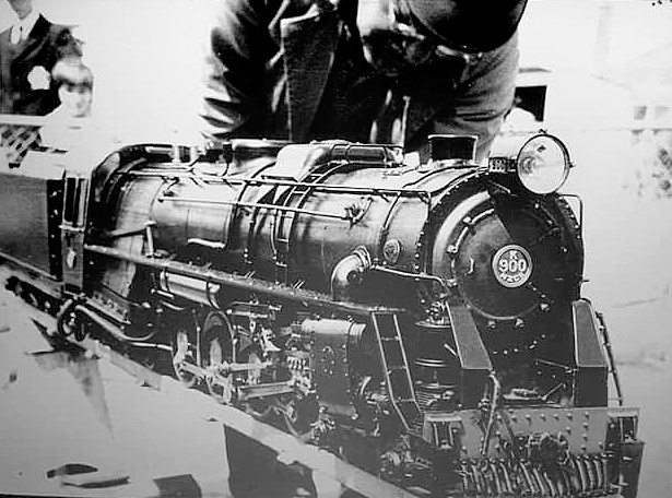 Bill Jackson (ex Cobden) with one of the many model trains he built.