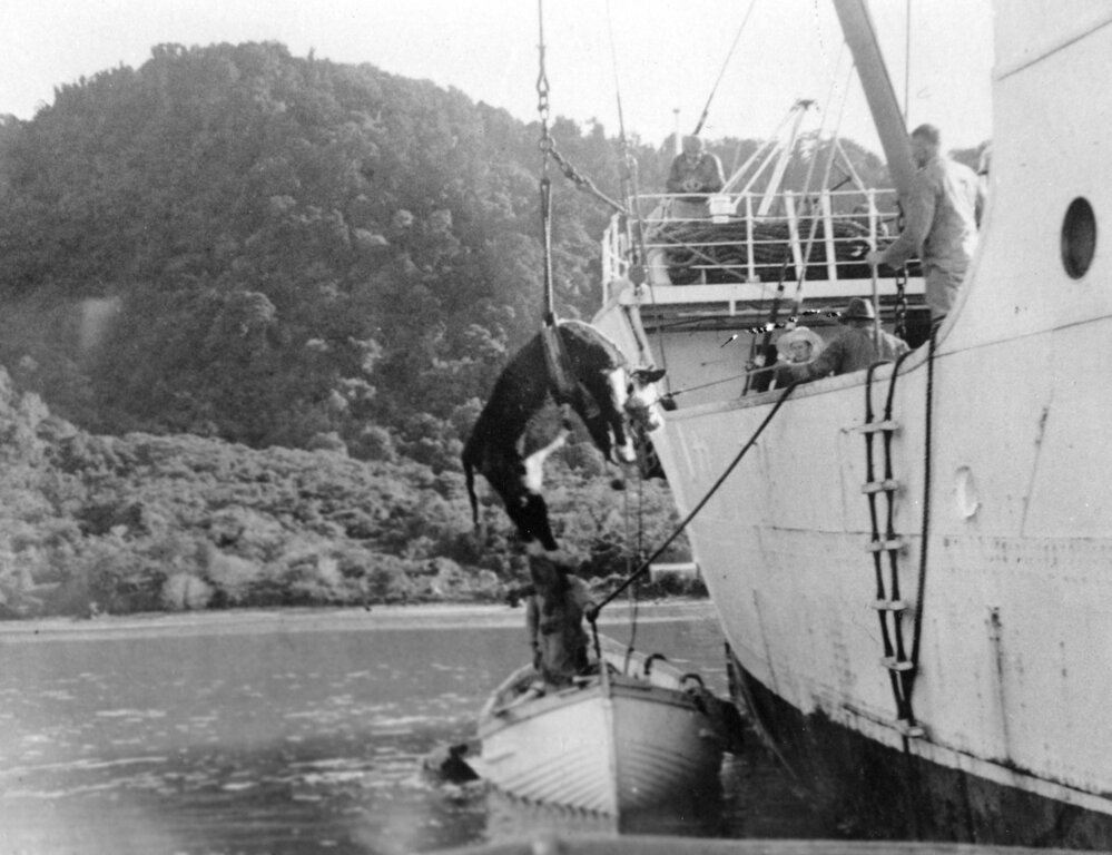 West Coast New Zealand History (12th Feb 2022). Unloading bulls at Jackson Bay 1933 *PHOTO ALBUM*. In Website West Coast New Zealand History. Retrieved 6th Apr 2026 20:01, from https://westcoast.recollect.co.nz/nodes/view/30641