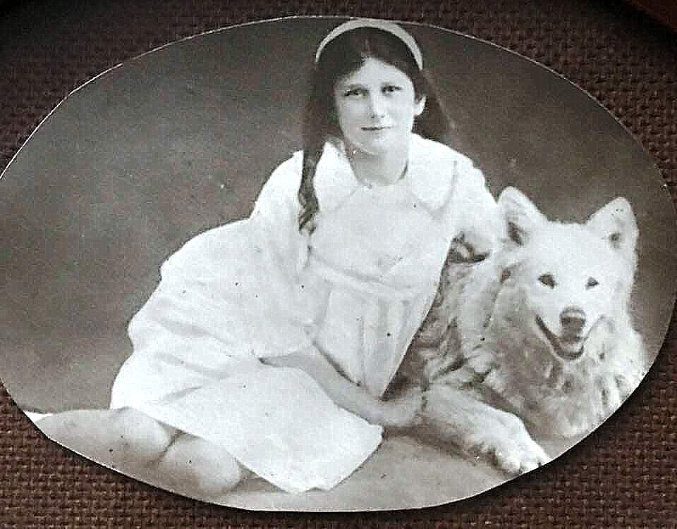 Jessie Pahl & Roy - leftover husky from Scott`s expedition to the Pole.Greymouth.ca.1915 - 20`s.