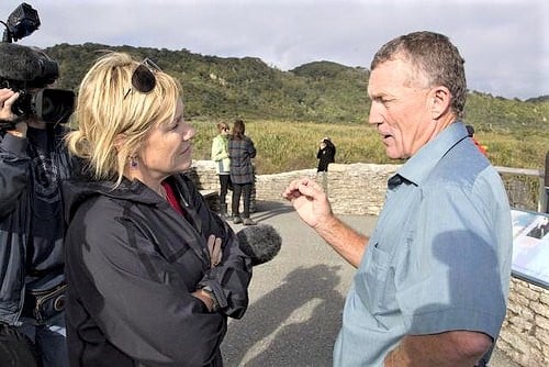 Lucy Lawless and Robyn Malcolm (actresses) debate conservation with mayor Tony Kokshoorn *PHOTO ALBUM(