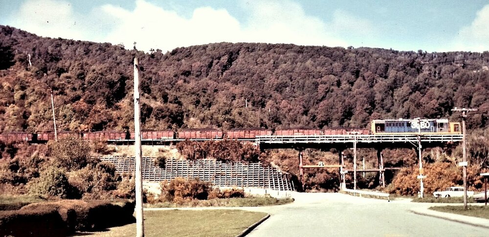 Coal wagons below the Rewanui Incline passing Dunollie hotel. Closed down in 1985.
