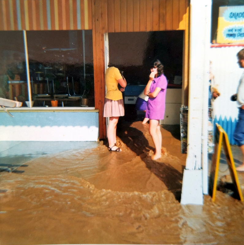 Reefton flood outside Tearooms in Broadway, 14th April 1974.