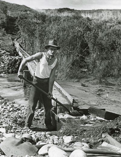 Owen Prince working on a gold claim at Addisons Flat-8 miles south of Westport.