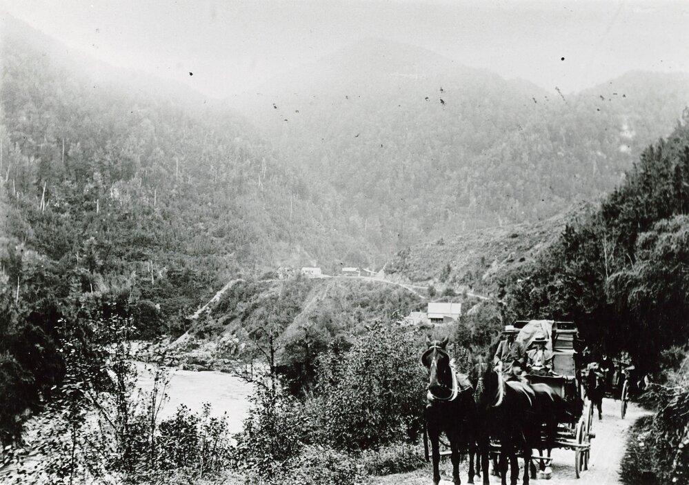 West Coast New Zealand History (19th Apr 2022). Newmans stage coach ascending School Hill at the Lyell, Upper Buller Gorge.. In Website West Coast New Zealand History. Retrieved 5th Apr 2026 04:44, from https://westcoast.recollect.co.nz/nodes/view/30931