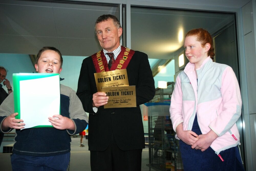 ALBUM - The Golden Ticket winners to be first down the Hydro slides, 2009.Greymouth.
