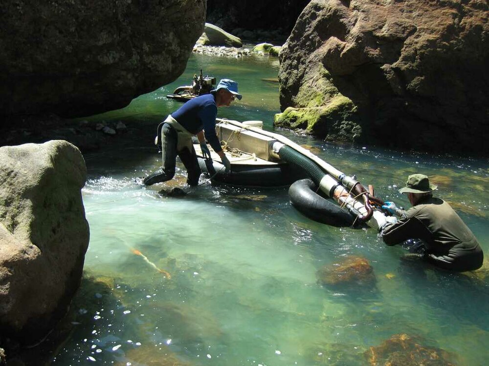 Gold prospecting with a small suction pump.2008.Waimangaroa River.