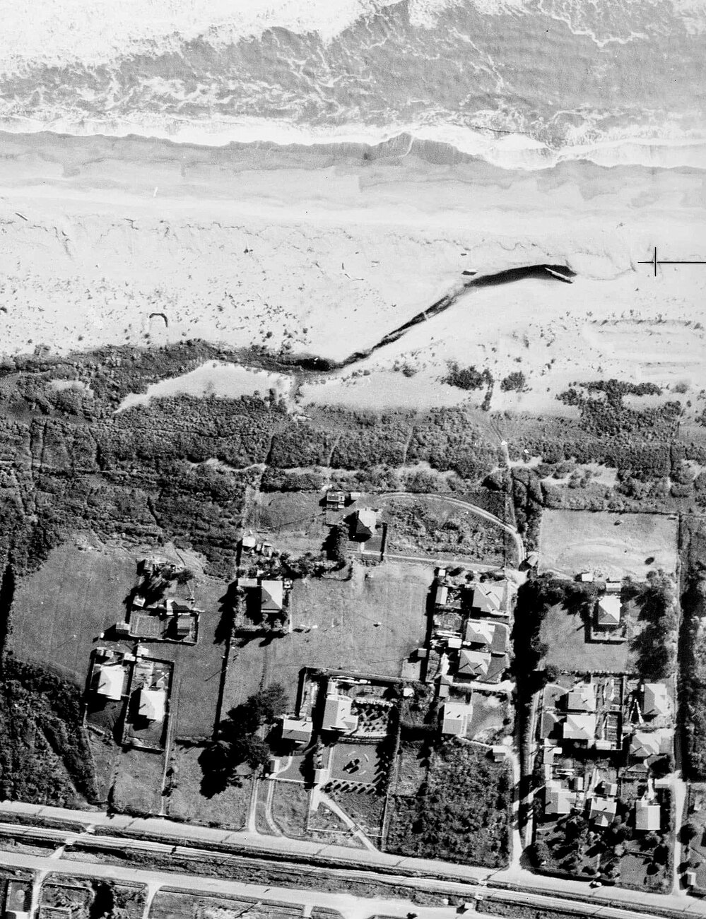 Karoro Domain before the Kotuku Surf Life Saving club rooms and Marist rugby field and rooms were built.