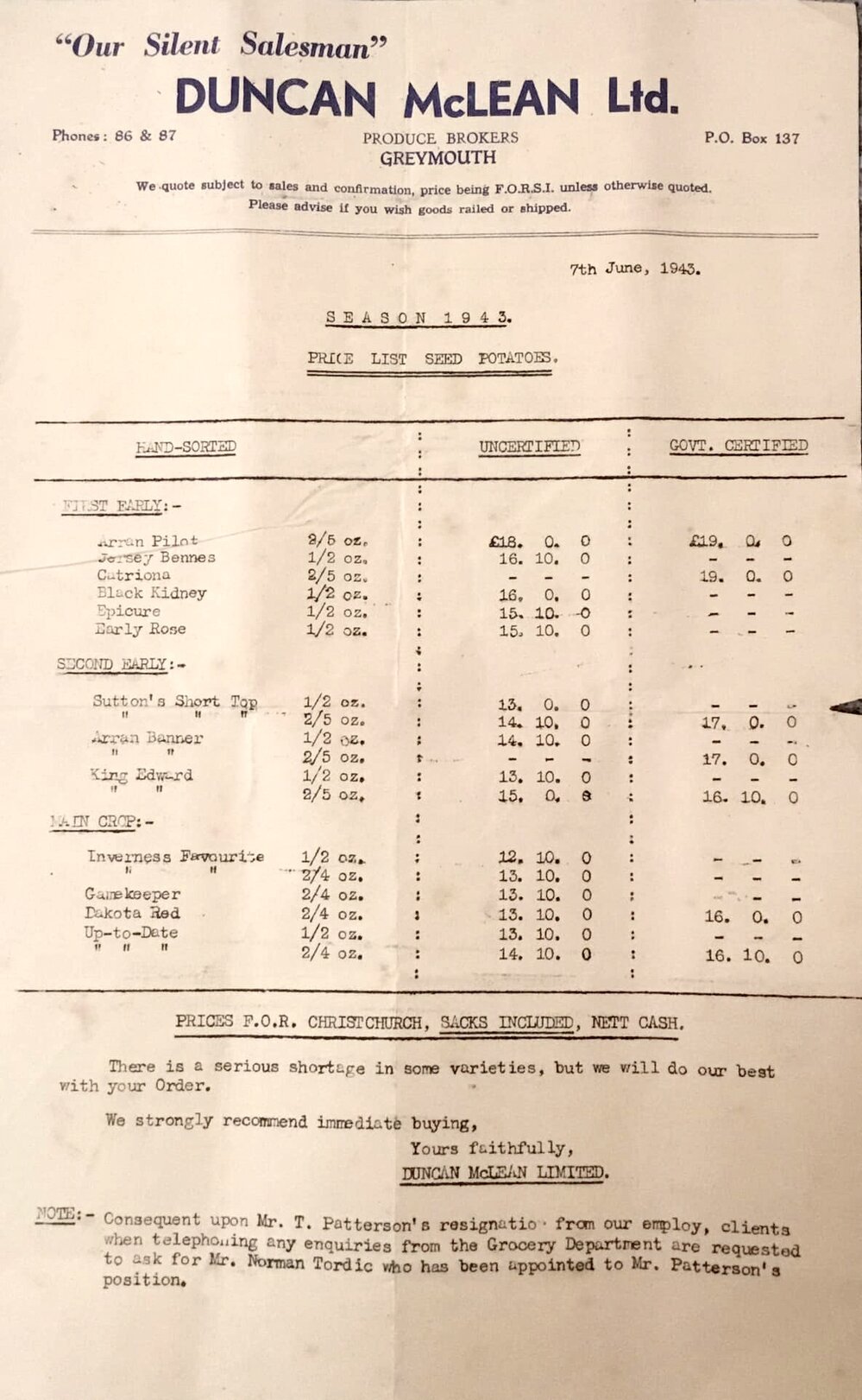 West Coast New Zealand History (9th Aug 2022). Duncan McLeans Ltd - seed potato list 1943. In Website West Coast New Zealand History. Retrieved 3rd Apr 2026 22:47, from https://westcoast.recollect.co.nz/nodes/view/31375