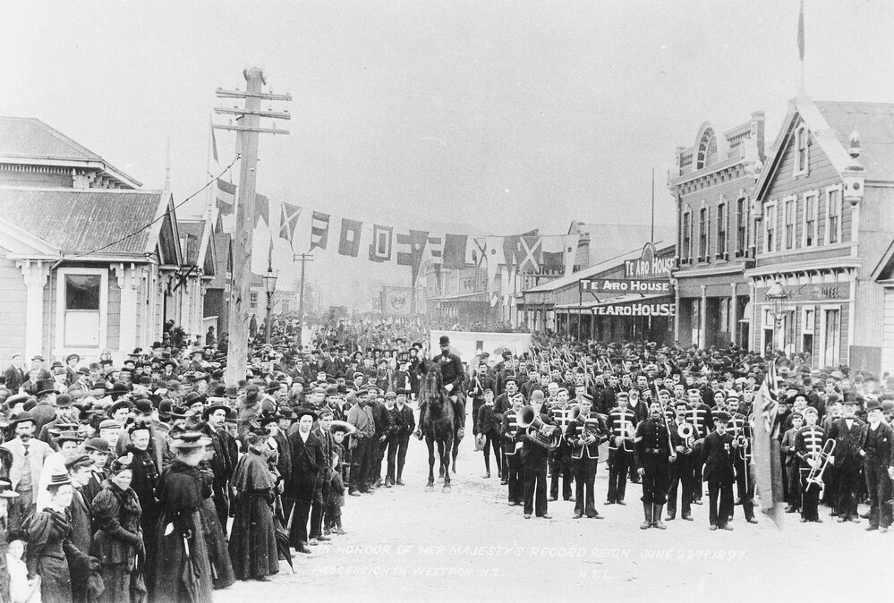 West Coast New Zealand History (15th Aug 2022). Local military volunteers and Westport band outside the Post Office.Westport.1897. In Website West Coast New Zealand History. Retrieved 3rd Apr 2026 20:42, from https://westcoast.recollect.co.nz/nodes/view/31392
