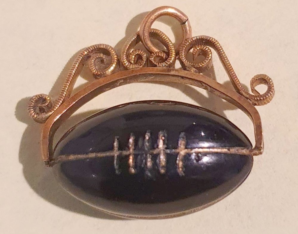 West Coast New Zealand History (15th Sep 2022). Small rugby ball set in old gold chain attached to beautiful filigree fitting.. In Website West Coast New Zealand History. Retrieved 3rd Apr 2026 15:37, from https://westcoast.recollect.co.nz/nodes/view/31444