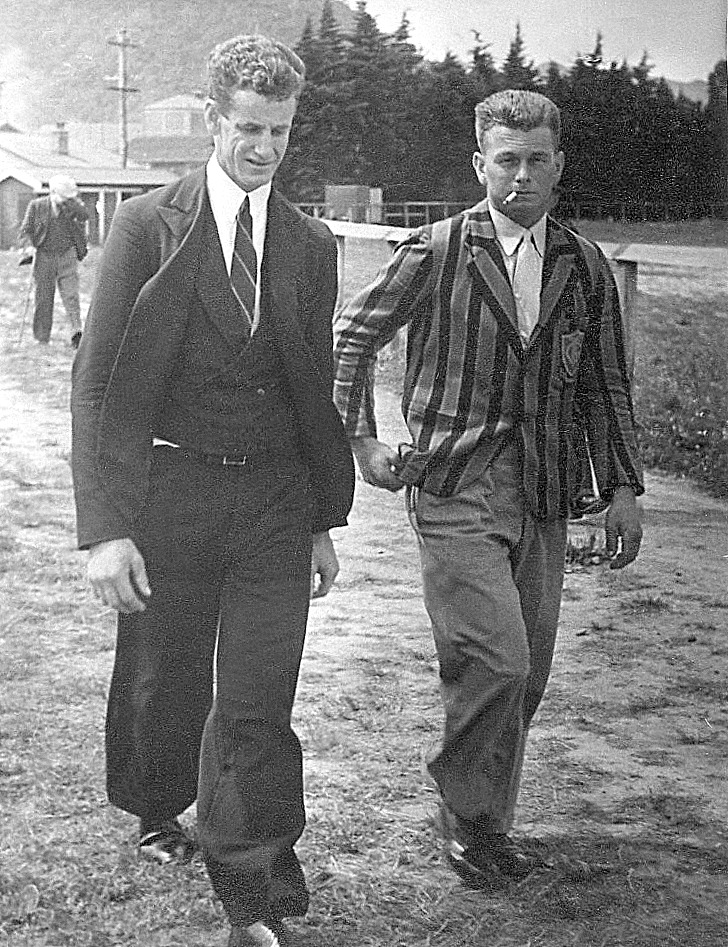Another day at the Greymouth races - Wallace Bruce and Gus Burrows .ca.1946.